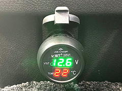 一応、電圧と温度が測れるモノ♪ ちょっと頭でっかちなので、取り付け出来ない車もありそうですね~