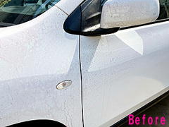 社用車を露天駐車場に停めているので、雨が降るとボディー側面に黒スジ汚れができて気になるのよね...