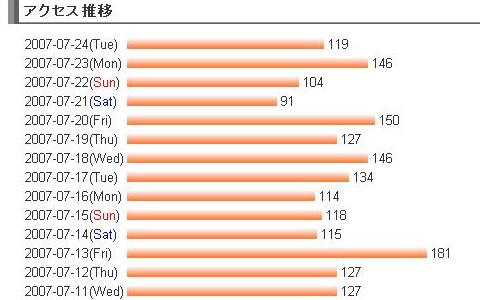 当ブログに設置しているカウンターは、重複カウントを防止していますので、「更新」 ボタンを連打してもカウントは上がりません。それなのに、連日のように100カウントオーバー、とても有り難い事です。