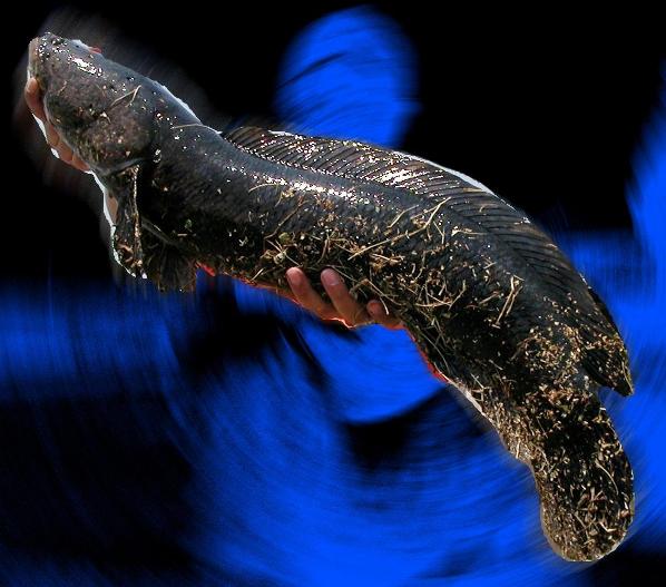 呼吸の泡から大きさがソコソコあると判断、高鳴る胸を抑え慎重にアプローチ、少々アップテンポにアクションを付けながら巻き続けると、呼吸場所から50cmぐらい離れた場所から突如として雷魚が襲いかかってきた(O_o)WAO!!! 思いっきりアワセを入れると重量級の引き、引きを堪能しつつ無事ランディングしたのは、この場所では久しぶりの大型であった。